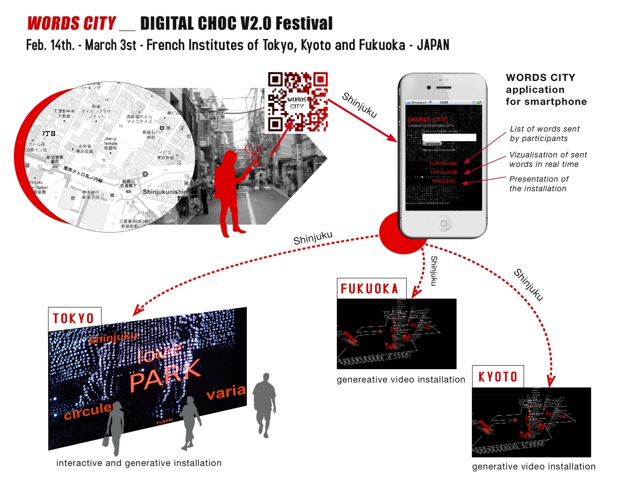 WORDS CITY – installation poétique interactive – Institut franco-japonais de Kyusku